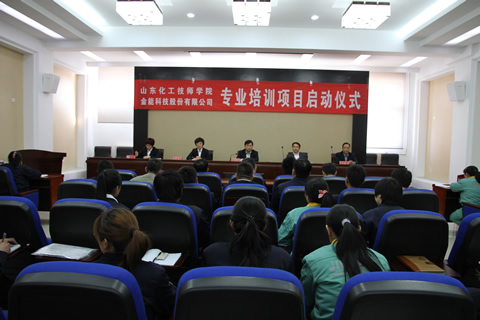 4月26日下午,山東化工技師學院與金能科技股份有限公司專業培訓項目啟動儀式在公司多媒體教室舉行,揭開了公司校企合作的新篇章。