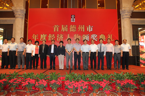 5月30日上午,首屆德州市年度經濟人物頒獎典禮在德州富豪康博酒店舉行,德州市委常委、常務副市長徐春福,德州市委常委、宣傳部長張傳忠,德州市人大副主任鐘玲,德州市政府副市長康志民,德州市政協副主席楊光來等領導出席,并為獲獎企業家頒獎,公司董事長秦慶平作為全市的十大經濟人物,受到了隆重表彰。