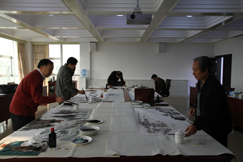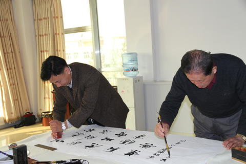 10月22日,公司邀請山東省書畫名家董風基、馬金忠、張樂毅等一行6人齊聚金能,現(xiàn)場揮毫潑墨,或書,或畫,寫意新版金能文化。