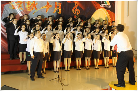 10月27日晚的大磊餐廳內,燈火通明,歌聲飛揚,叫好聲、加油聲、鼓掌聲此起彼伏,公司“金秋十月、唱響未來”合唱比賽正緊張進行。