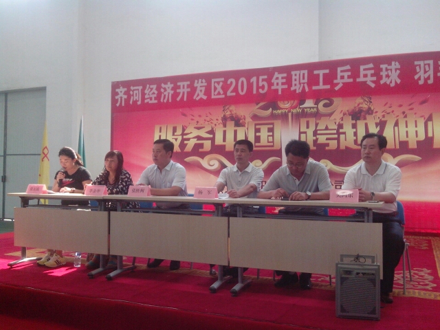 6月16日,齊河經濟開發區2015年職工乒乓球、羽毛球比賽落下帷幕。經過激烈角逐,公司員工趙麗麗、王光英分別奪得女子羽毛球單打的亞軍和季軍,公司獲得男子乒乓球團體賽的第四名。(圖為比賽現場)