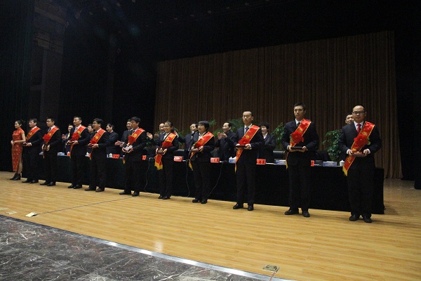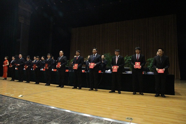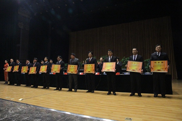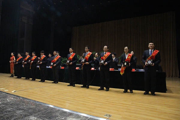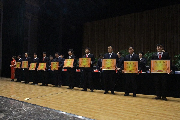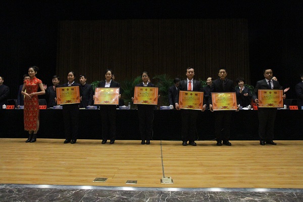 8:00,會(huì)議在雄壯的國歌聲中開幕。公司副總經(jīng)理張文勇宣讀了《關(guān)于表彰2016年度先進(jìn)集體和先進(jìn)個(gè)人的決定》,在歡快的樂曲和熱烈的掌聲中,秦慶平董事長首先為企業(yè)功勛楊建華頒發(fā)了金牌,隨后,10名勞動(dòng)模范、6 名技術(shù)標(biāo)兵、10名最佳進(jìn)步獎(jiǎng)獲得者、357名明星員工的代表、8個(gè)先進(jìn)單位、28個(gè)先進(jìn)班組依次上臺(tái)領(lǐng)獎(jiǎng),公司領(lǐng)導(dǎo)為他們頒獎(jiǎng)。